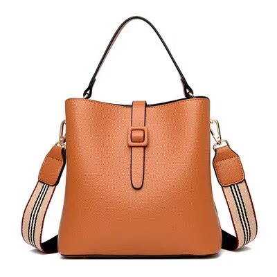 New Genuine Leather Bucket Bag, Large Capacity, Soft Leather Handbag/Crossbody Bag, Wide Shoulder Strap, Women's Shoulder Bag
